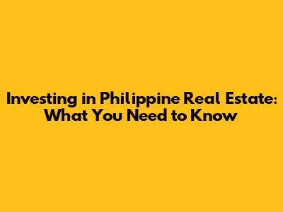 Investing In Philippine Real Estate: What You Need To Know