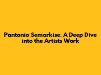 Pantonio Semarkise: A Deep Dive Into The Artist's Work