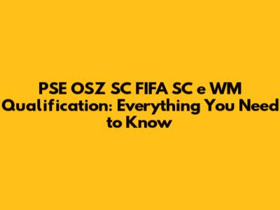 PSE OSZ SC FIFA SC E WM Qualification: Everything You Need To Know