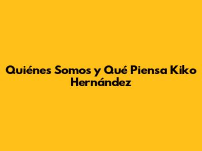 Quiénes Somos Y Qué Piensa Kiko Hernández