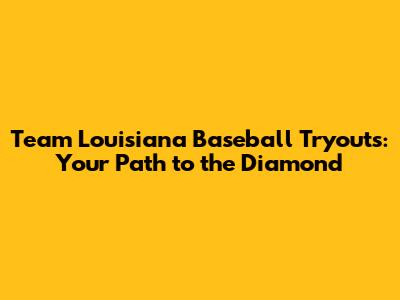 Team Louisiana Baseball Tryouts: Your Path To The Diamond