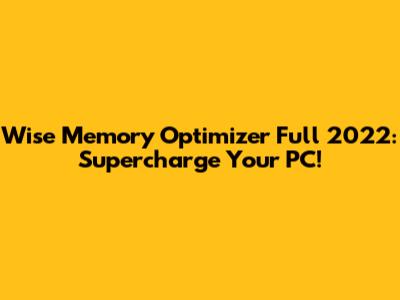 Hey guys! Ever feel like your computer is running slower than a snail in molasses? You're not alone! A sluggish PC can be incredibly frustrating, especially when you're trying to work, game, or even just browse the web. But don't you worry, because today we're diving deep into Wise Memory Optimizer Full 2022, a fantastic tool designed to breathe new life into your aging (or even new!) machine. This article is your ultimate guide, covering everything you need to know about this memory management software, from its features and benefits to how to install and use it like a pro. So, buckle up, and let's get your PC running like a well-oiled machine again!